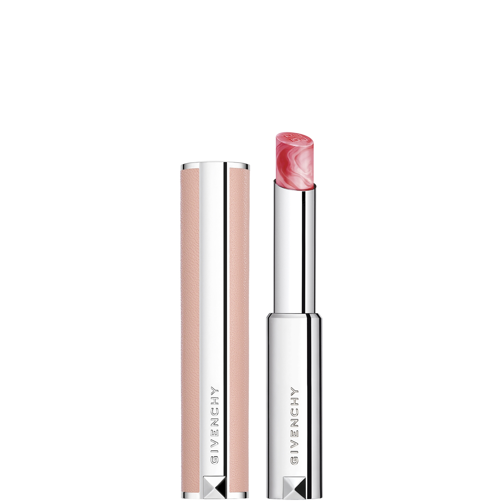 The Givenchy Rose Perfecto Lip Balm is a luxurious formula that combines lasting hydration with fresh, luminous colour. Crafted with a 95% natural origin formula, the balm melts dreamily into the lips, offering up to 24 hours of hydration.Ten versatile shades dress the lips in a lustrous wash of colour. Each balm is enriched with a blend of rose oil, hyaluronic acid, vitamin C, pink pepper and shea butter, seeking to smooth and encourage the illusion of plumper-looking lips for up to eight hours.Housed in a deluxe leather case, the long-wearing balm is a couture accessory to be carried with you wherever you go.
