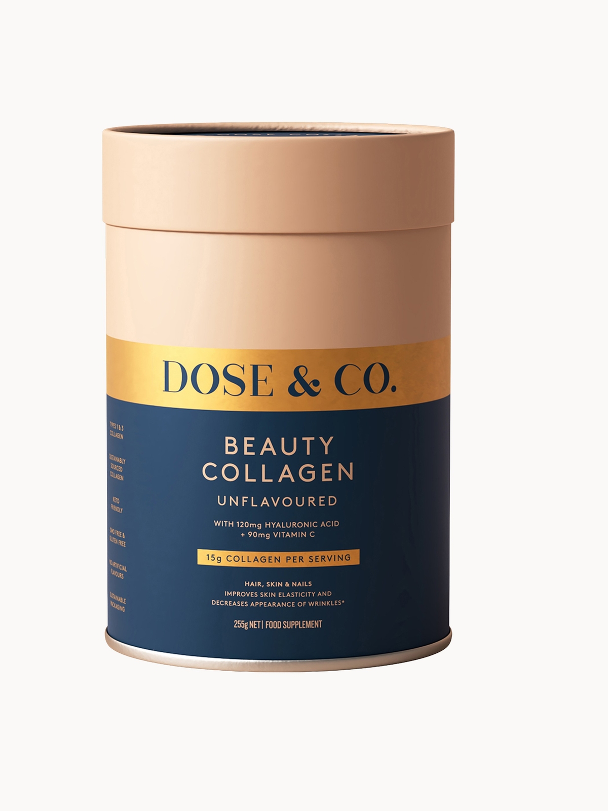 Crafted with premium, 100% natural ingredients, the Dose & Co Beauty Collagen Powder is a luxurious powder featuring a blend of hyaluronic acid, vitamin C and collagen peptides. Designed to be added to water, milk or a smoothie, the food supplement is the perfect addition to your self-care ritual.